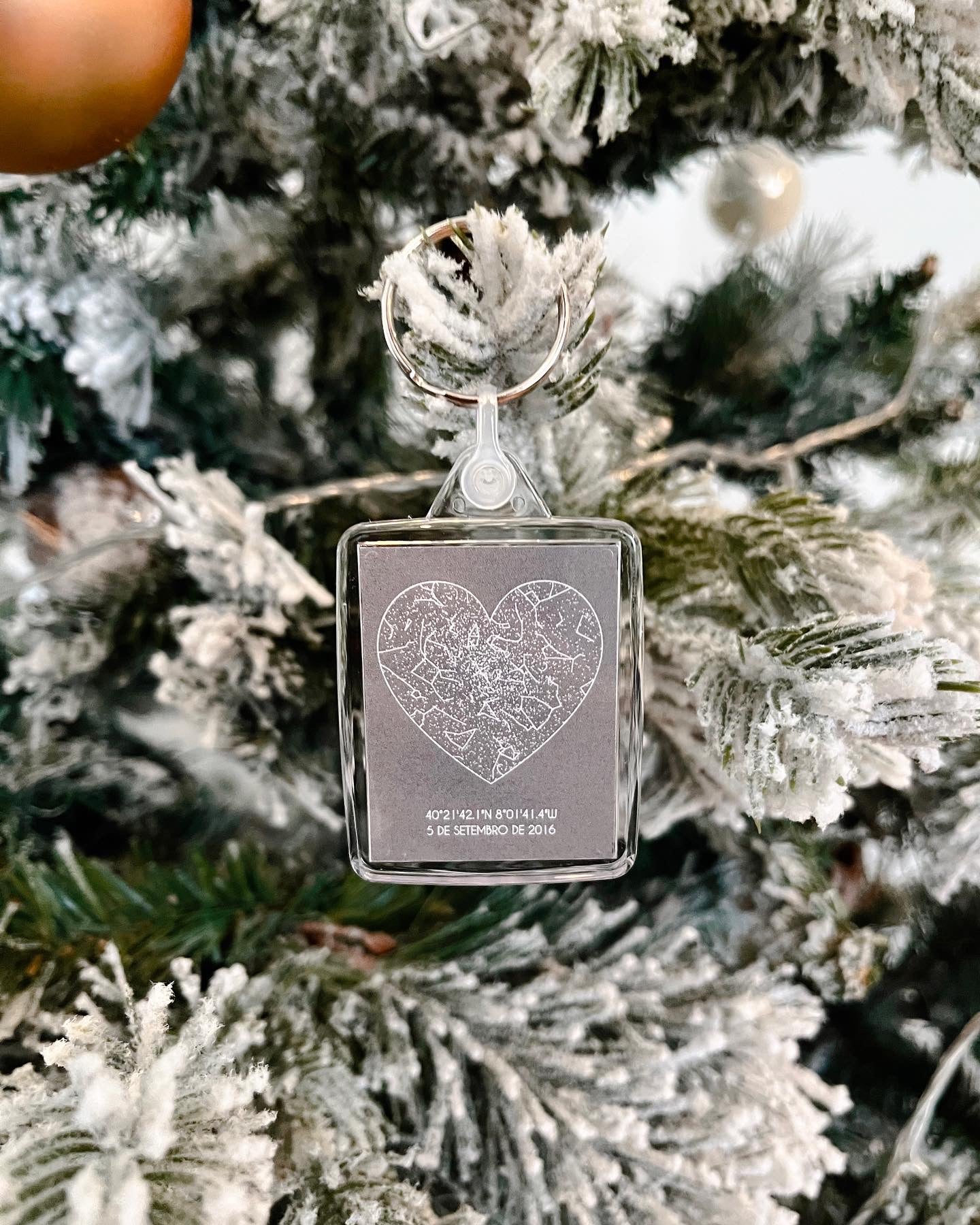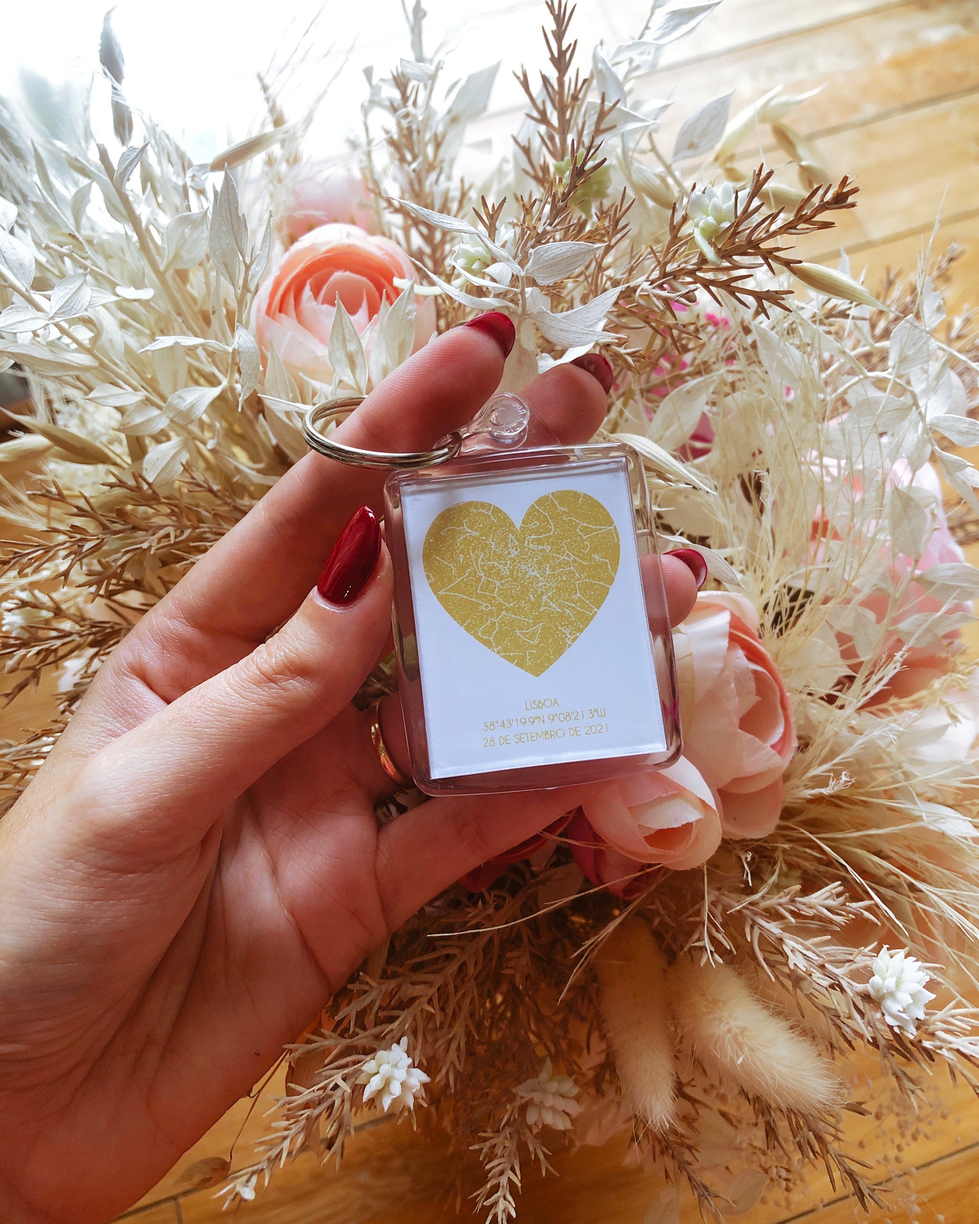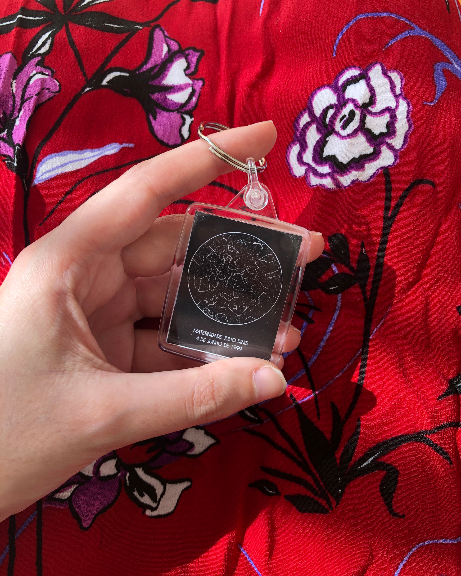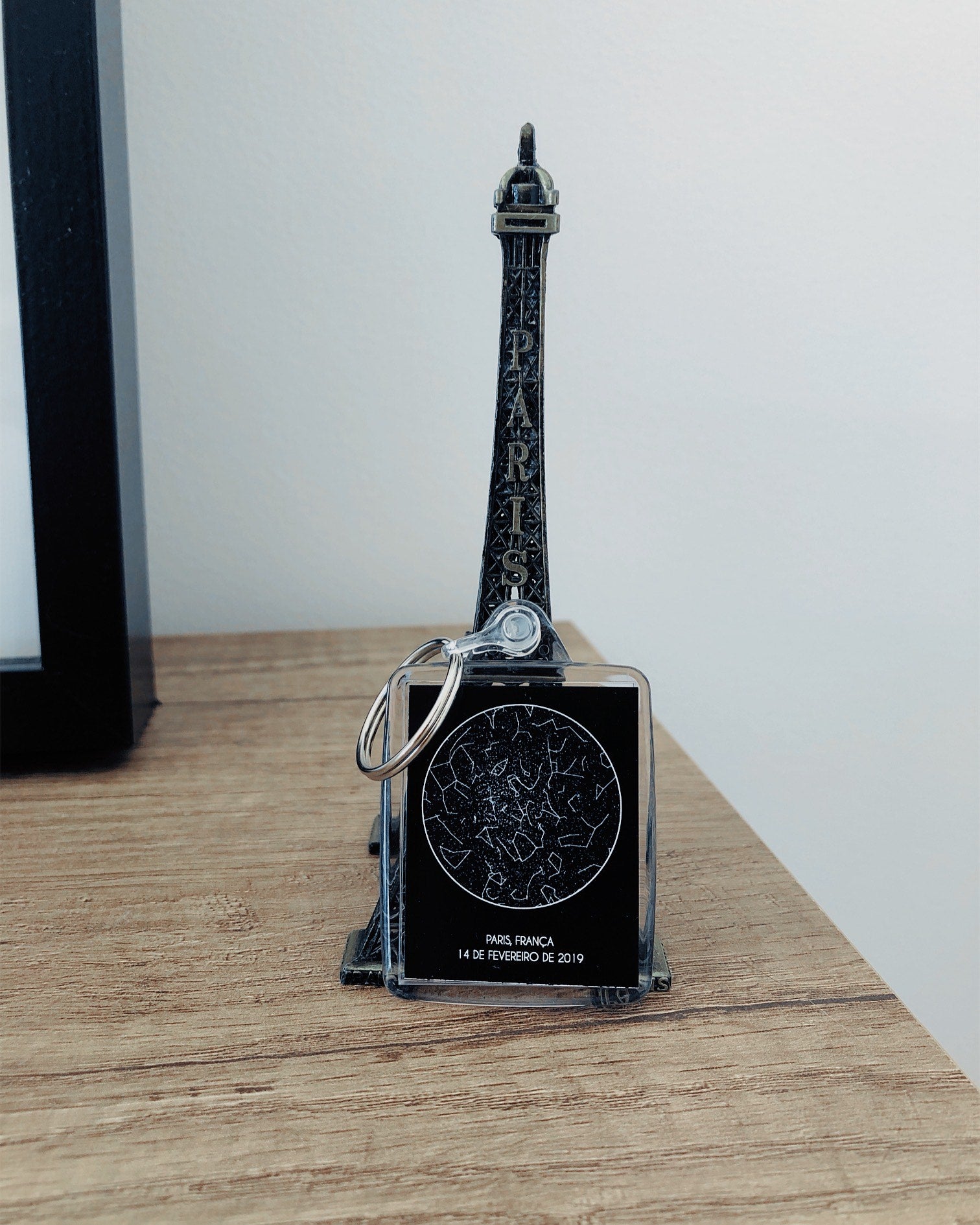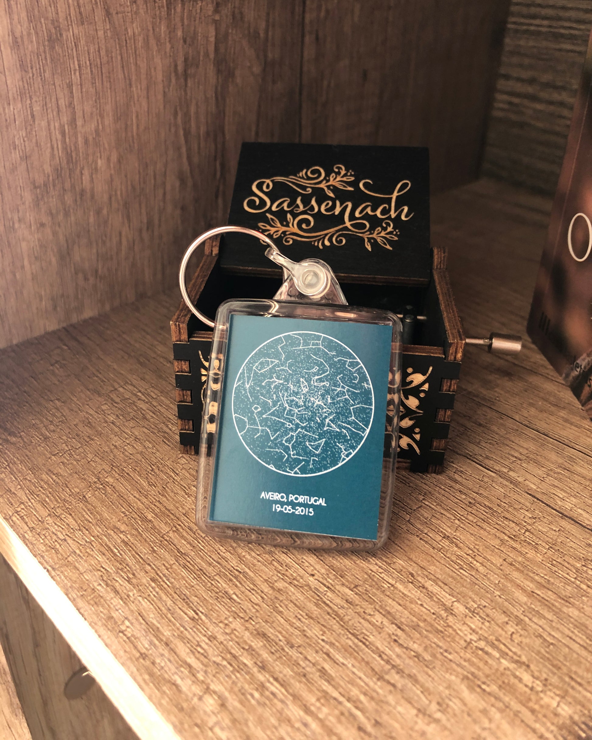 Este Porta-chaves tem um Mapa de Estrelas em cada uma das faces. Assim sendo, tens dois momentos especiais eternizados no mesmo Porta-chaves.