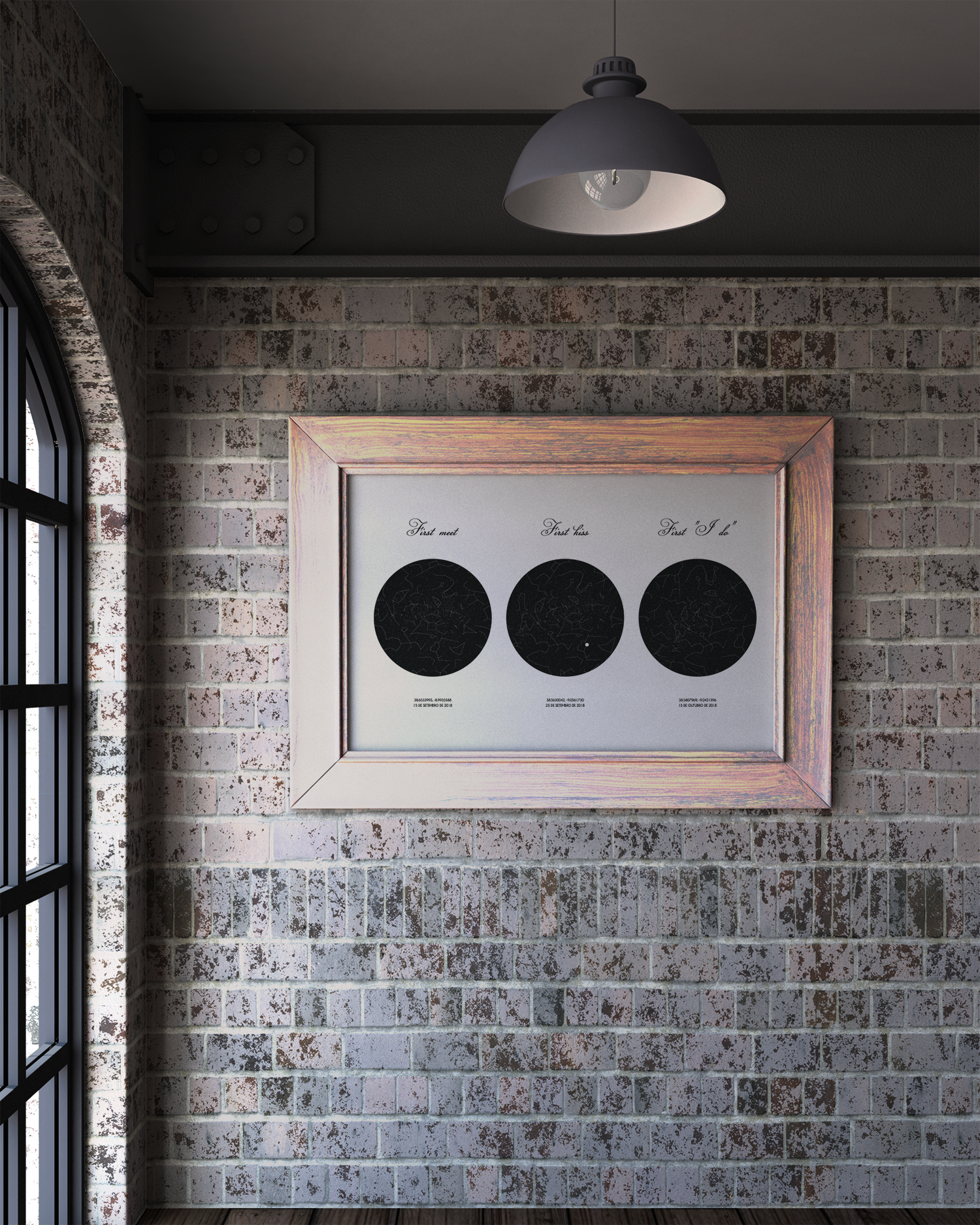 Este Poster inclui três Mapas de Estrelas, permitindo assim guardar três momentos especiais de uma só vez. Cada Mapa de Estrelas reflete o exato alinhamento das estrelas, das constelações e da lua (se visível) num determinado momento e a partir de um determinado local. Ou seja, é o desenho preciso da forma como brilhava o céu durante as ocasiões que queres eternizar.